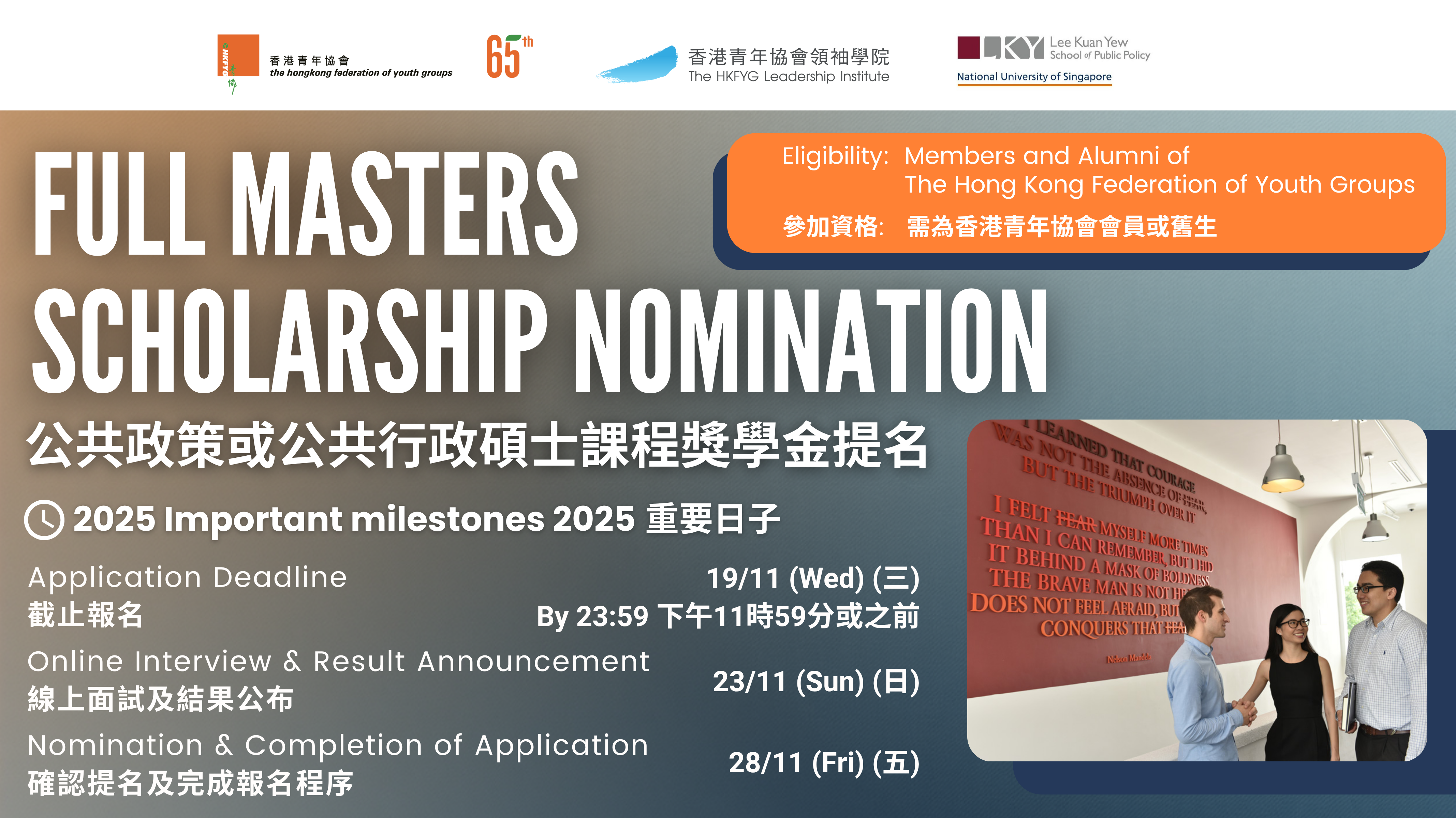 Terms and conditions apply. In case of any disputes, the HKFYG Leadership Institute reserves all rights of final decision.